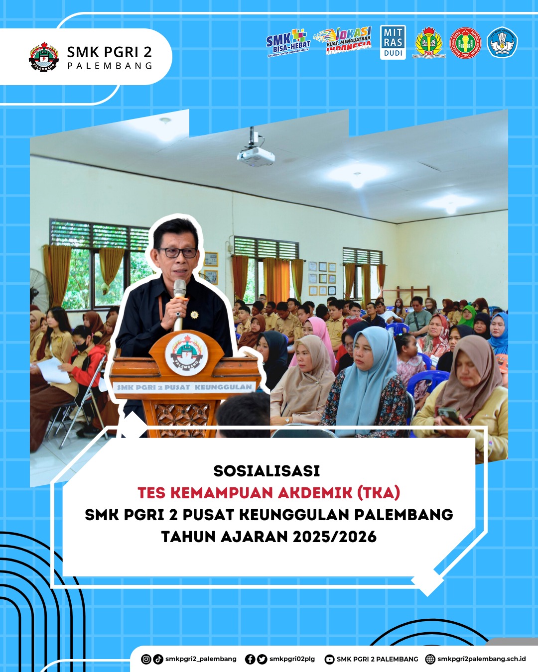 SMK PGRI 2 PALEMBANG - Sabtu 27 September 2025 tepatnya di Aula SMK PGRI 2 Pusat Keunggulan Palembang meaksankan kegiatan SOSIALISASI TES KEMAMPUAN AKDEMIK (TKA) SMK PGRI 2 PUSAT KEUNGGULAN PALEMBANG TAHUN AJARAN 2025/2026